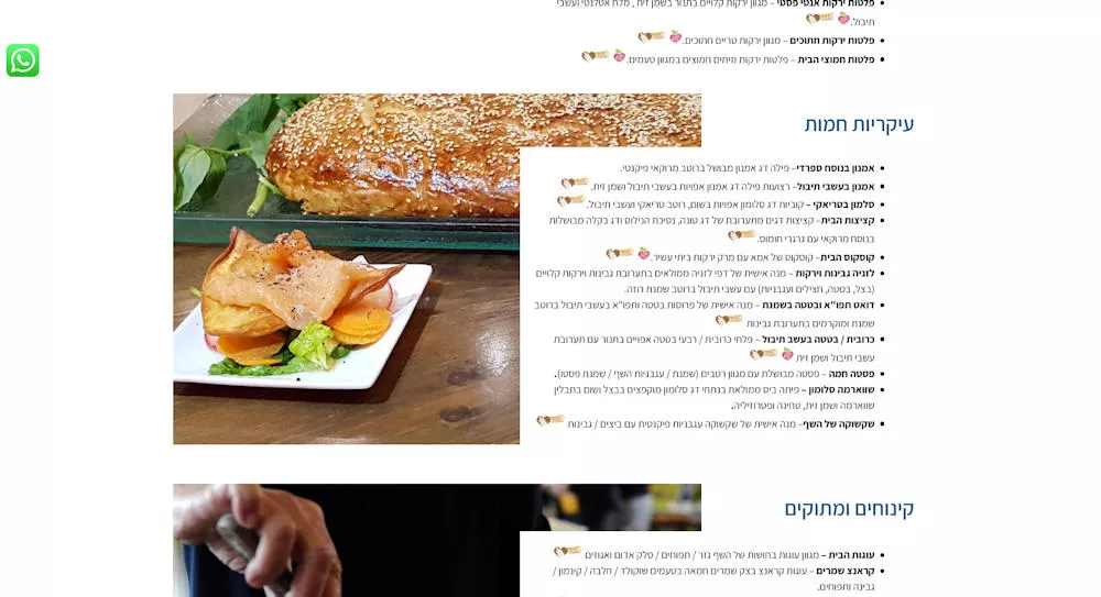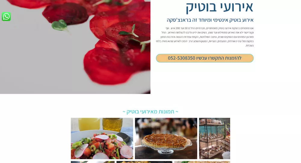 התחלנו בשיחה מעמיקה עם הבנה שהם רוצים כרגע רק אתר תדמיתי לנוכחות באינטרנט, לא לשווק או למכור דרכו כלום אלא לשים מספר טלפון ואפשרות לשוחח איתם. להעביר את הלב הגדול והרחב שלהם ואת אהבת המקצוע, עם המסורת – הריחות והטעמים מהבית, עם חידושים אישיים של עדי השף המשפחתי (שממשיך להשתלם בארץ ובחו"ל כמובן), ועם אוכל חלבי, צמחוני, טבעוני ובלי גלוטן. שווה ממש!