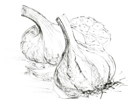 חיפשתי חיפשתי ולא מצאתי שום ציור של שום ראוי לשמו שאפשר להשתמש בו בלי זכויות יוצרים (אך, אני נהנית ממשחקי המילים האלו). כלומר, יש הרבה ציורים של שום, יפים ביותר, יפים יותר משלי, אבל הם לא זמינים בחינם, או לא זמינים בכלל, ואז נזכרתי שאמנם יש לי עכבר משוכלל ומקלדת מעולה, אבל יש גם נייר ועיפרון, ופעם ידעתי לרשום לא רע, רק צריך למצוא את החפצים המיושנים האלו שנמצאים מבויישים בפינה, ולהשתמש בהם.