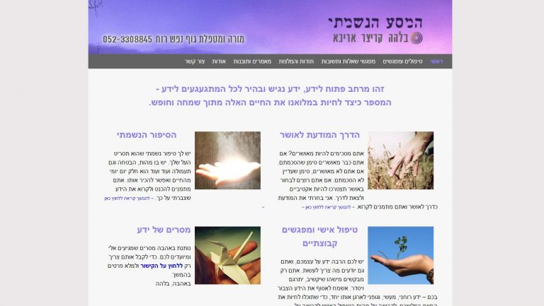אז זה האתר של בלהה, עם 4 הפניות ממוקדות בדף הבית, וכל השאר נגיש דרך כפתורי הניווט בסרגל העליון, בלי לחפש יותר מדי. ברור, פשוט וקל, מעמיק ומחכים.