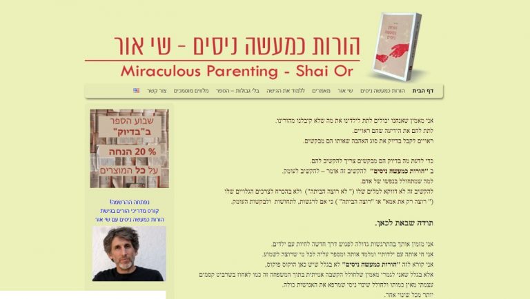 טוב, זה היה קל, כי כל העיצוב כבר קיים, כך שלא התעכבנו הרבה והאתר עלה לאויר במהירות שיא, אתר של "הורות כמעשה ניסים", כמעשה ניסים בפני עצמו.