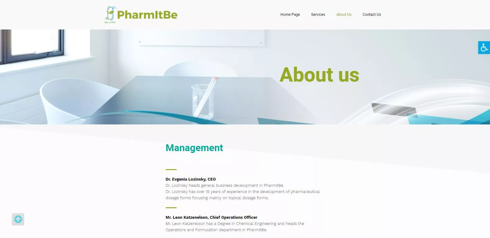 הבקשה של לאון היתה ליצור אתר תדמיתי, שישקף את מהות החברה PharmItBe באופן המדוייק ביותר. אתר מינימליסטי, עם כמות מידע ראשונית שתלך ותגדל עם הזמן, ועם לוגו מקסים שכיוון לצבעוניות אהובה עלי, ירוקים וטורקיזים ומה שביניהם.