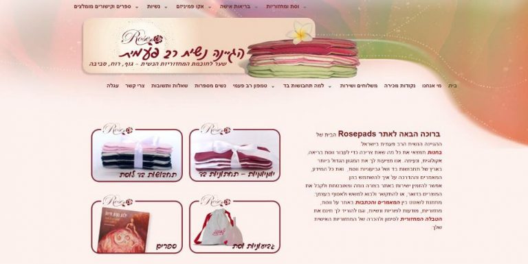 כשביקשתי מנועה לבנות אתר חדש ל Rosepads דברנו רק על “העברה” לוורדפרס של אתר קיים, בפועל גילינו שאין רק ‘להעביר’- יש ללטש, לדייק, לעצב נכון ומחדש את מה שאני רוצה שיקרה באתר הזה – נגישות גבוהה לחנות של התחבושות והגביעוניות, דגש על מה שיש לנו להציע, מידע מקיף ומקצועי בתחום ההיגיינה הנשית הרב פעמית.